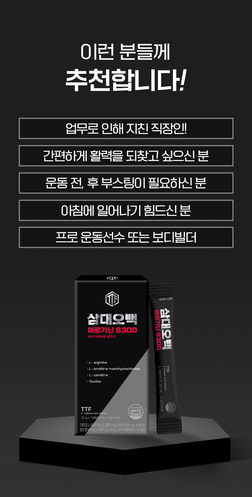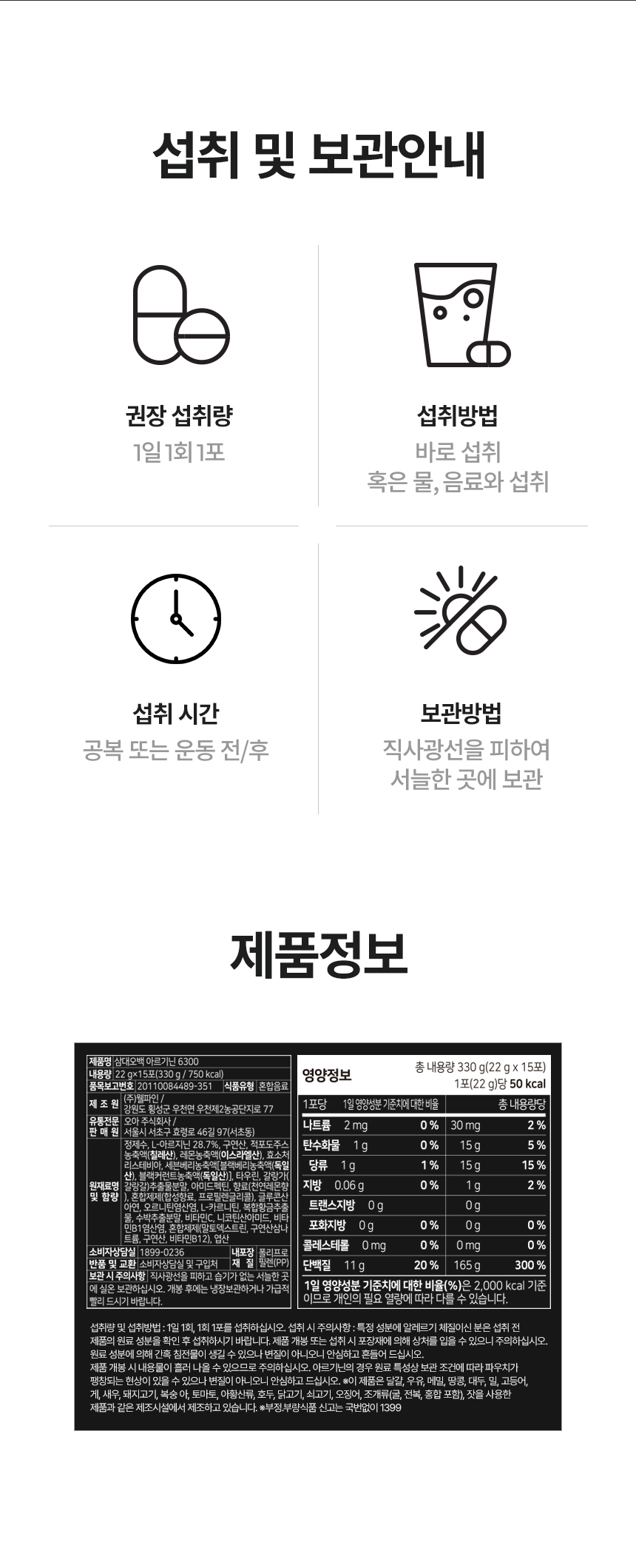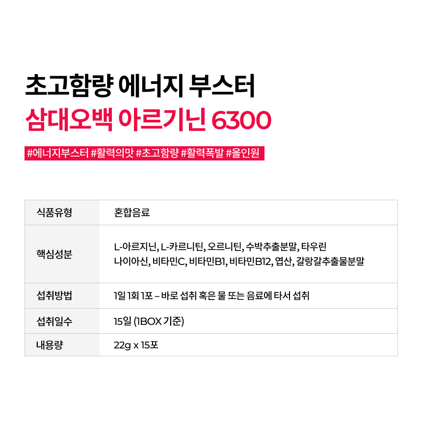 | 품명 및 모델명 | 삼대오백 올인원 아르기닌 6300mg |