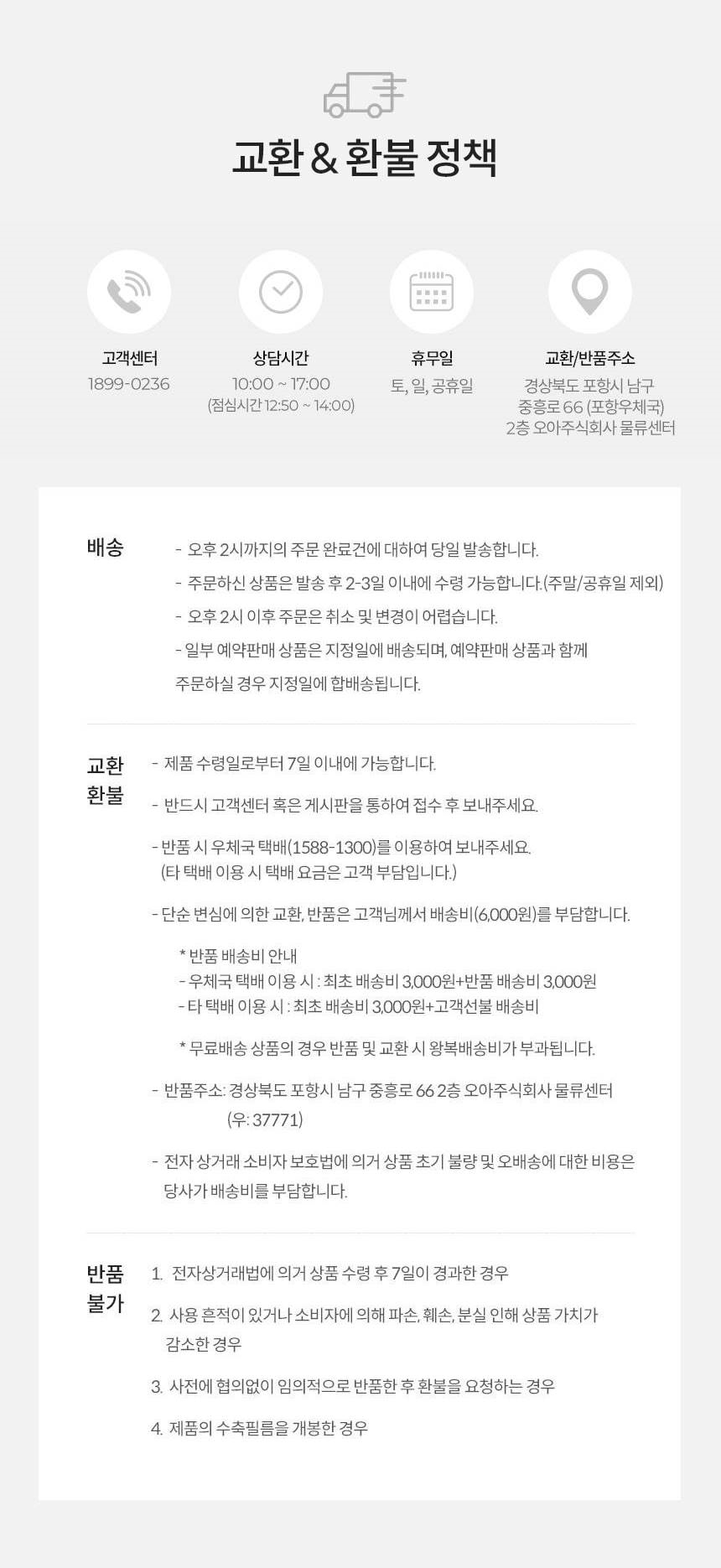 - 상품의 불량/하자 및 표시광고 및 계약 내용과 다른 경우 해당 상품 회수(배송)비용은 무료이나, 고객님의