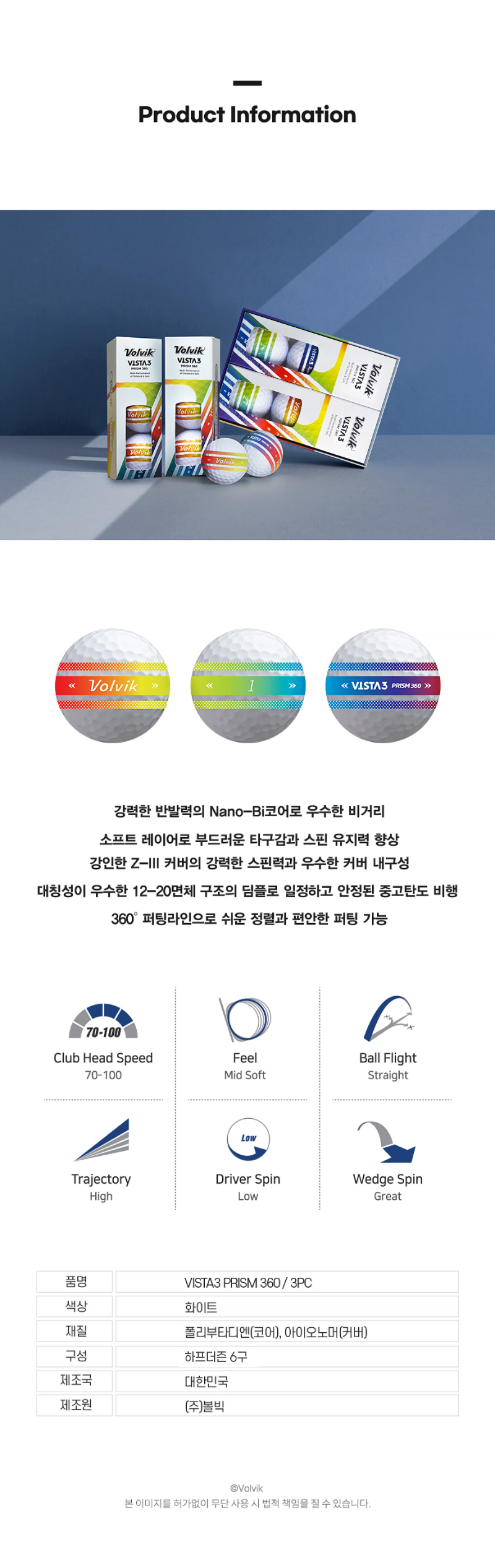 | 품명 및 모델명 | 볼빅 2023 비스타3 프리즘 3피스 골프공 6구 화이트 |