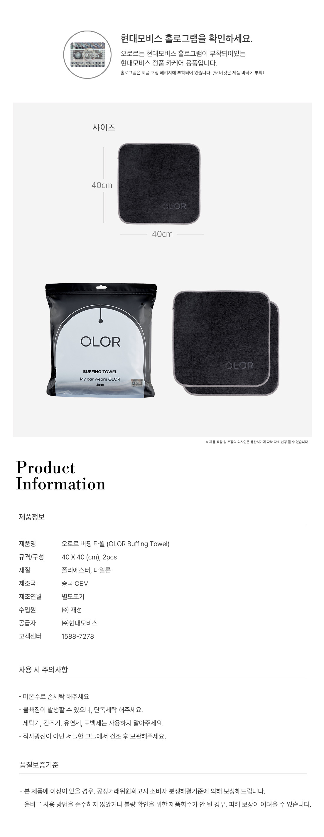 | 품명 및 모델명 | 오로르 버핑타월 |