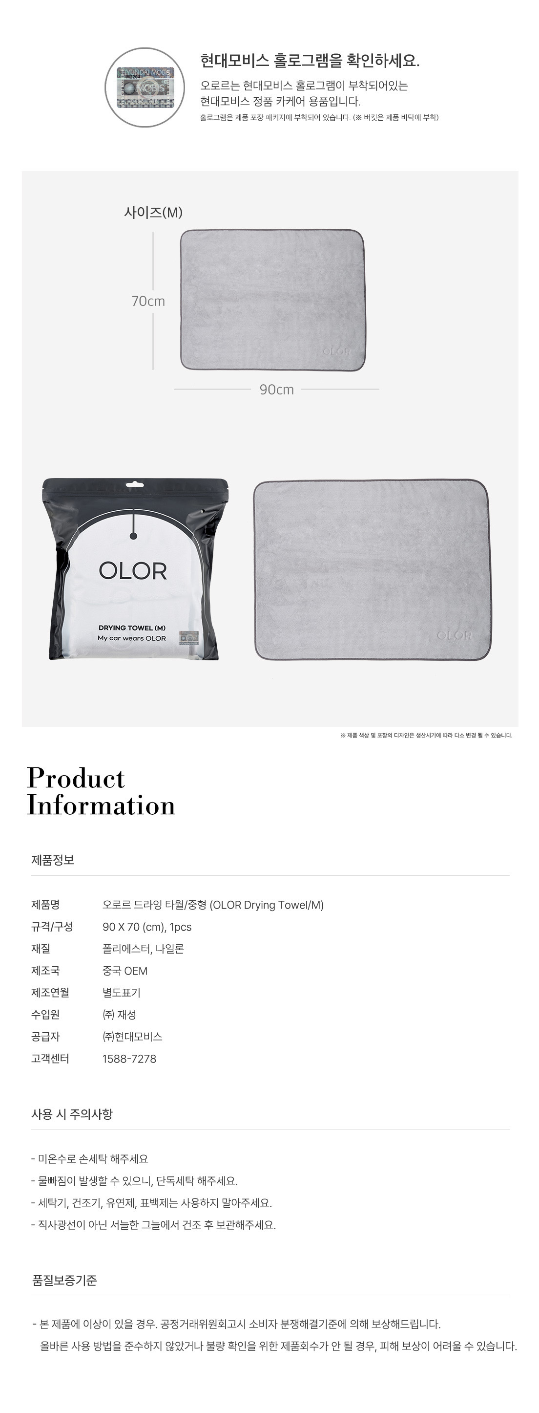 | 품명 및 모델명 | 오로르 드라잉 타월 / 중형 |