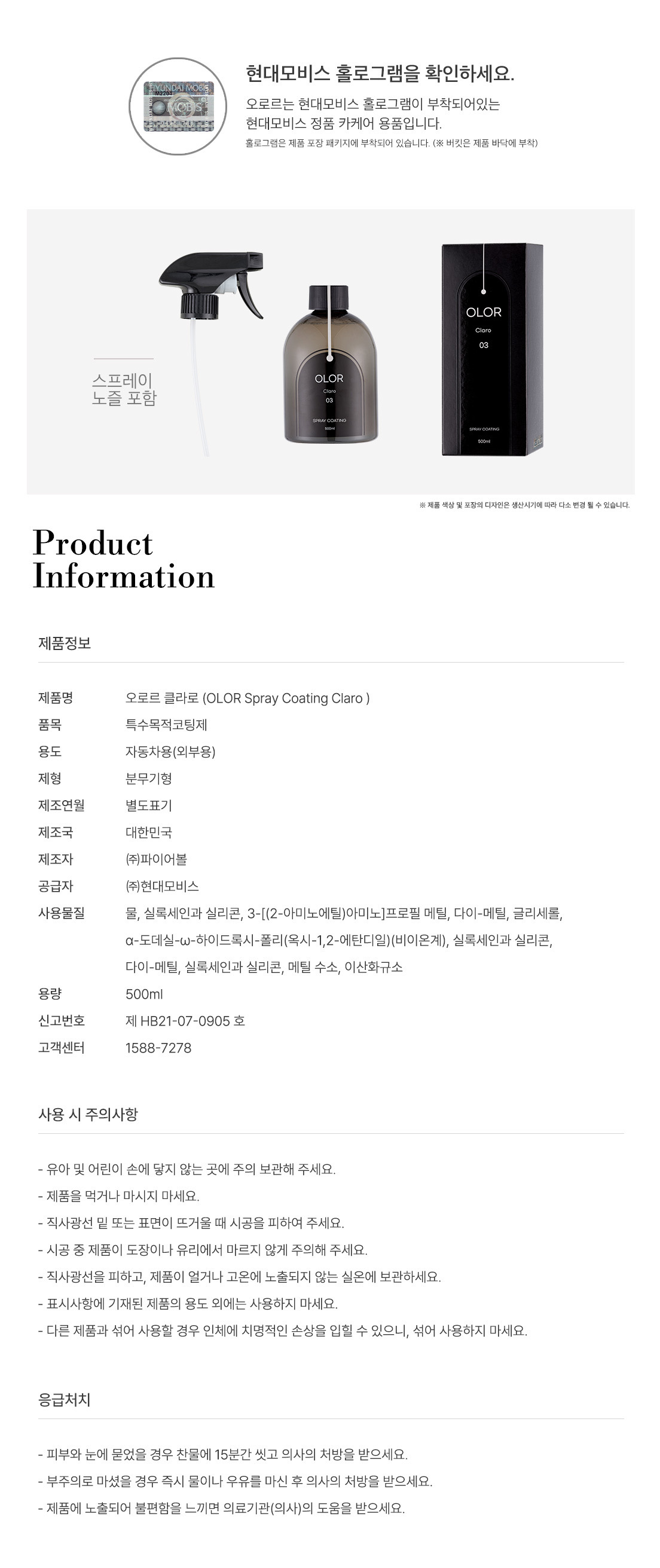 | 품명 및 모델명 | 특수목적코팅제 / 오로르 클라로 |