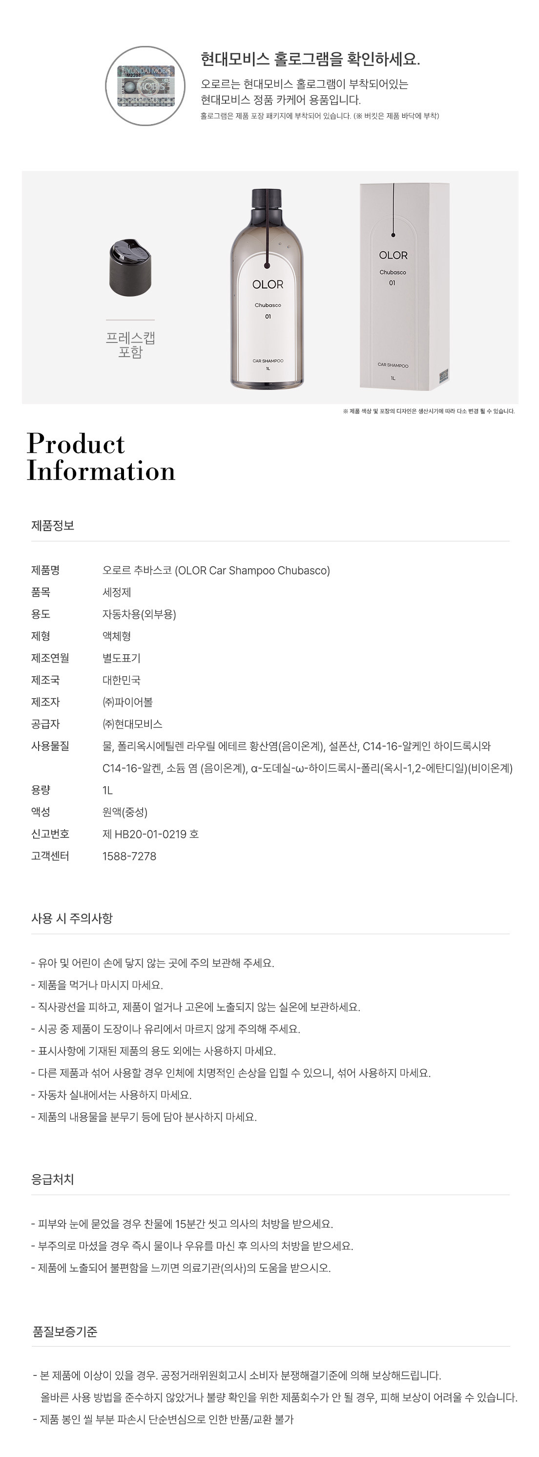 | 품명 및 모델명 | 세정제_자동차 카샴푸 / 오로르 추바스코 |