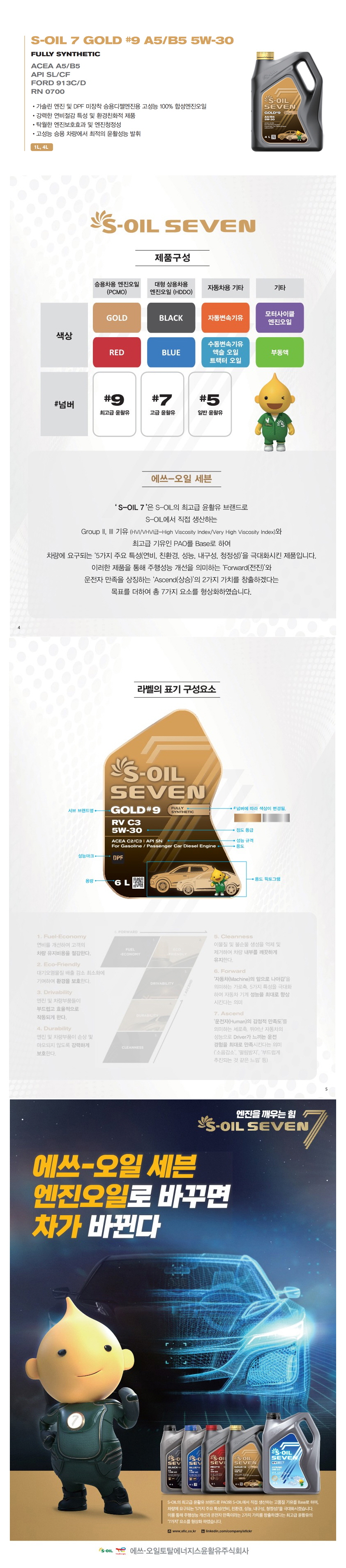 품명 및 모델명 S-OIL 7 GOLD #9 A5/B5 5W-30 4L [휘발유전용 윤활유]