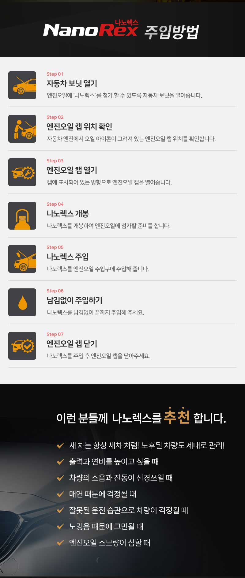 [나노렉스] 프리미엄 엔진오일 첨가제 썬더 320ml(8L) 엔진보호 연비 출력증강