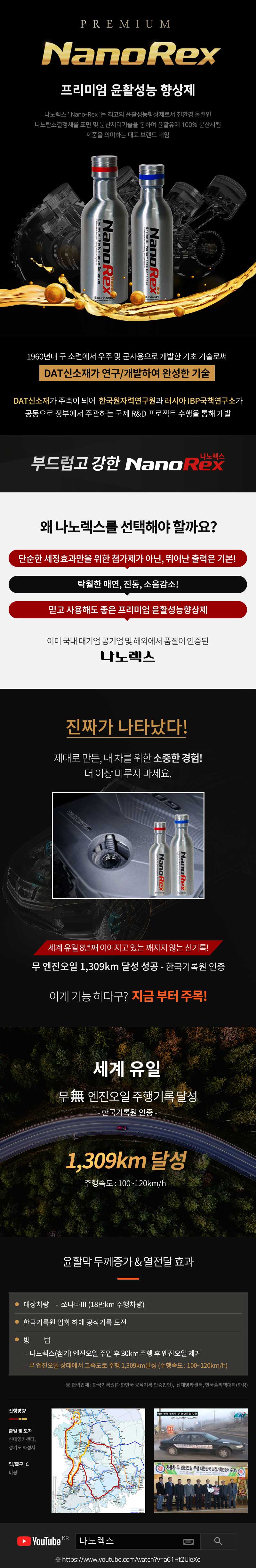 품명 및 모델명 프리미엄 엔진오일 첨가제 나노렉스 썬더 320ml (8L)