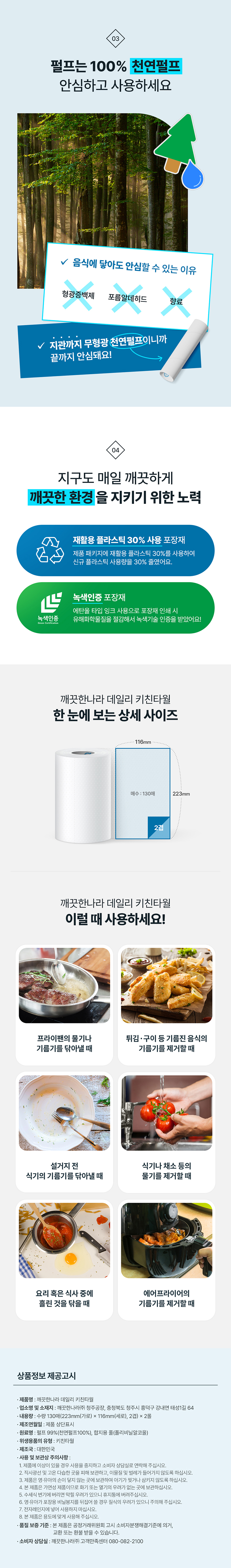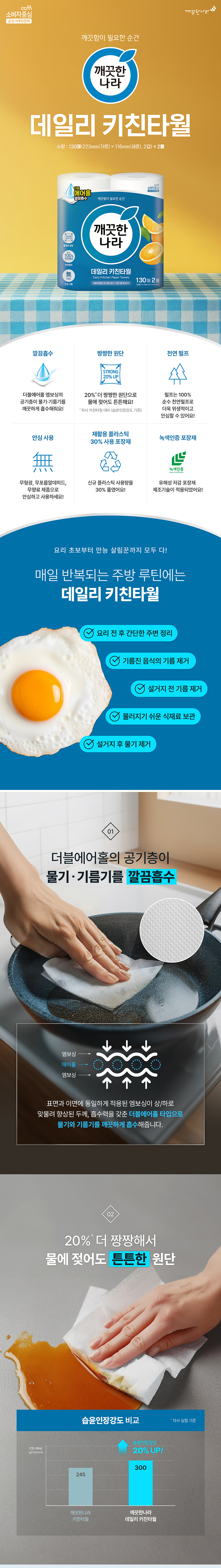 | 품명 및 모델명 | [깨끗한나라] 데일리 키친타올 130매 2롤 x 8팩 |