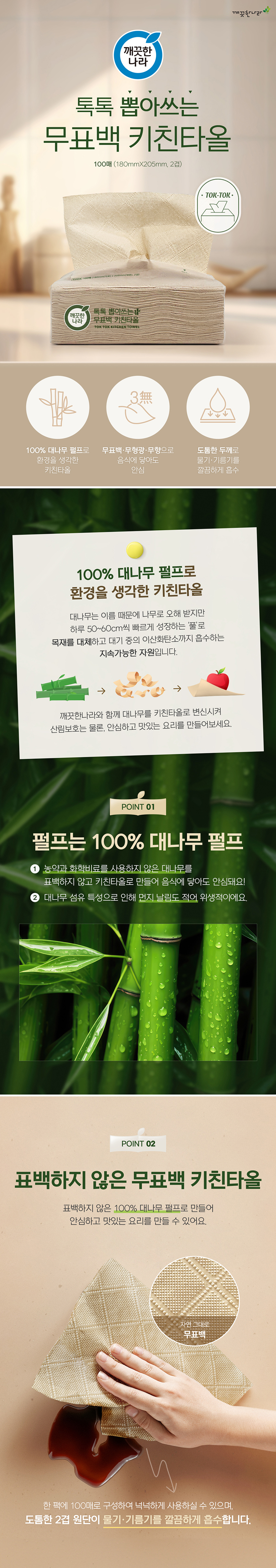 | 품명 및 모델명 | [깨끗한나라] 뽑아쓰는 무표백 대나무 펄프 키친타올 100매 x 6입(소프트팩) |