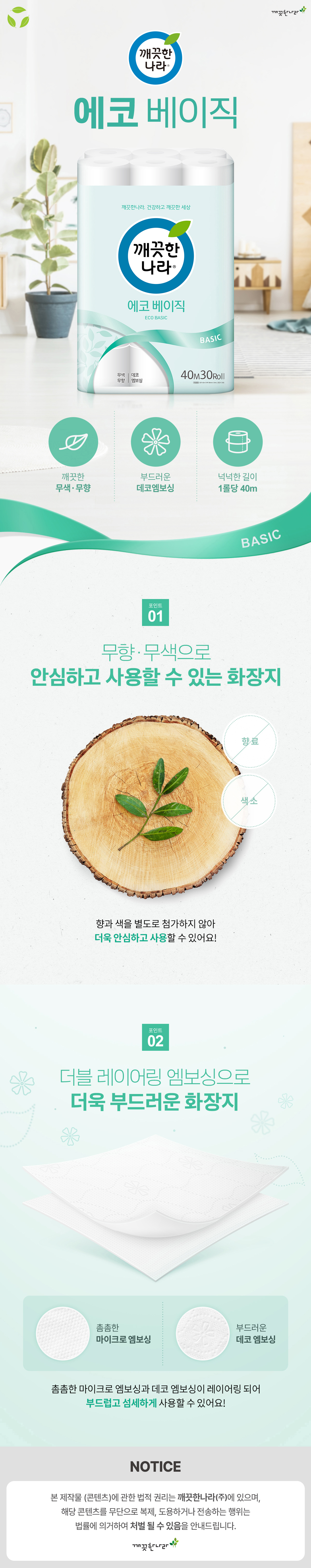 | 품명 및 모델명 | [깨끗한나라] 2겹 에코베이직 40m 30롤 x 3팩 |