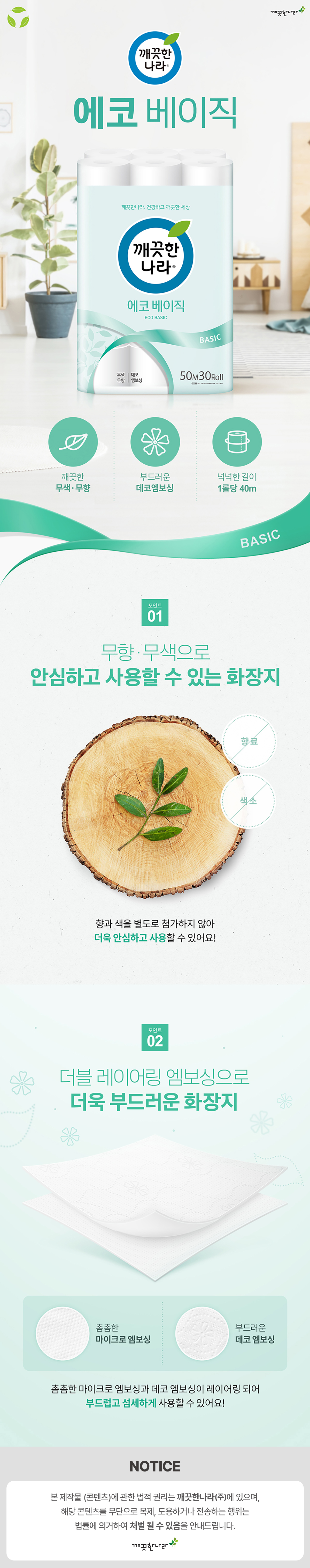 | 품명 및 모델명 | [깨끗한나라] 2겹 에코베이직 50m 30롤 x 3팩 |