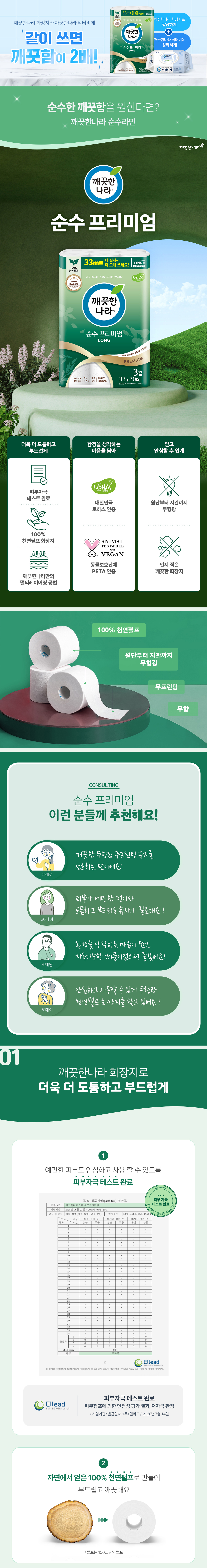 [깨끗한나라] 3겹 순수 프리미엄 33m 30롤 x 3팩 |