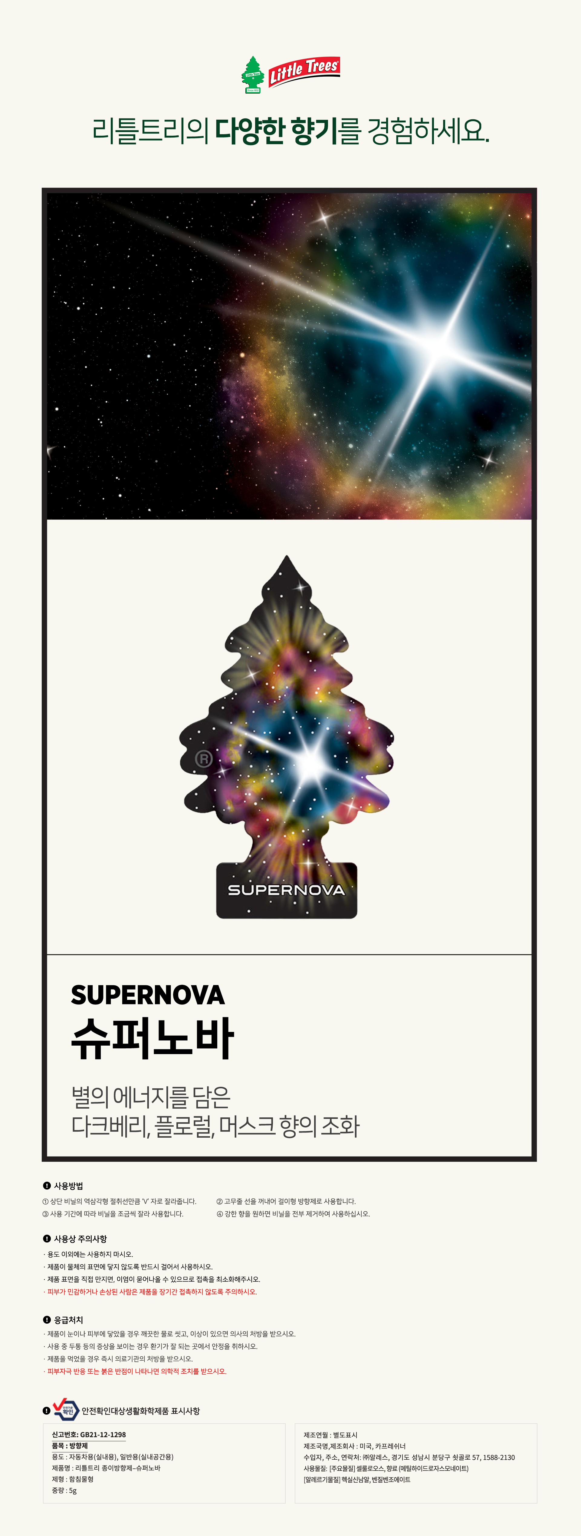 | 제조사, 수입품의 경우 수입자를 함께 표기 | 카프레쉬너, (주)알레스 |
