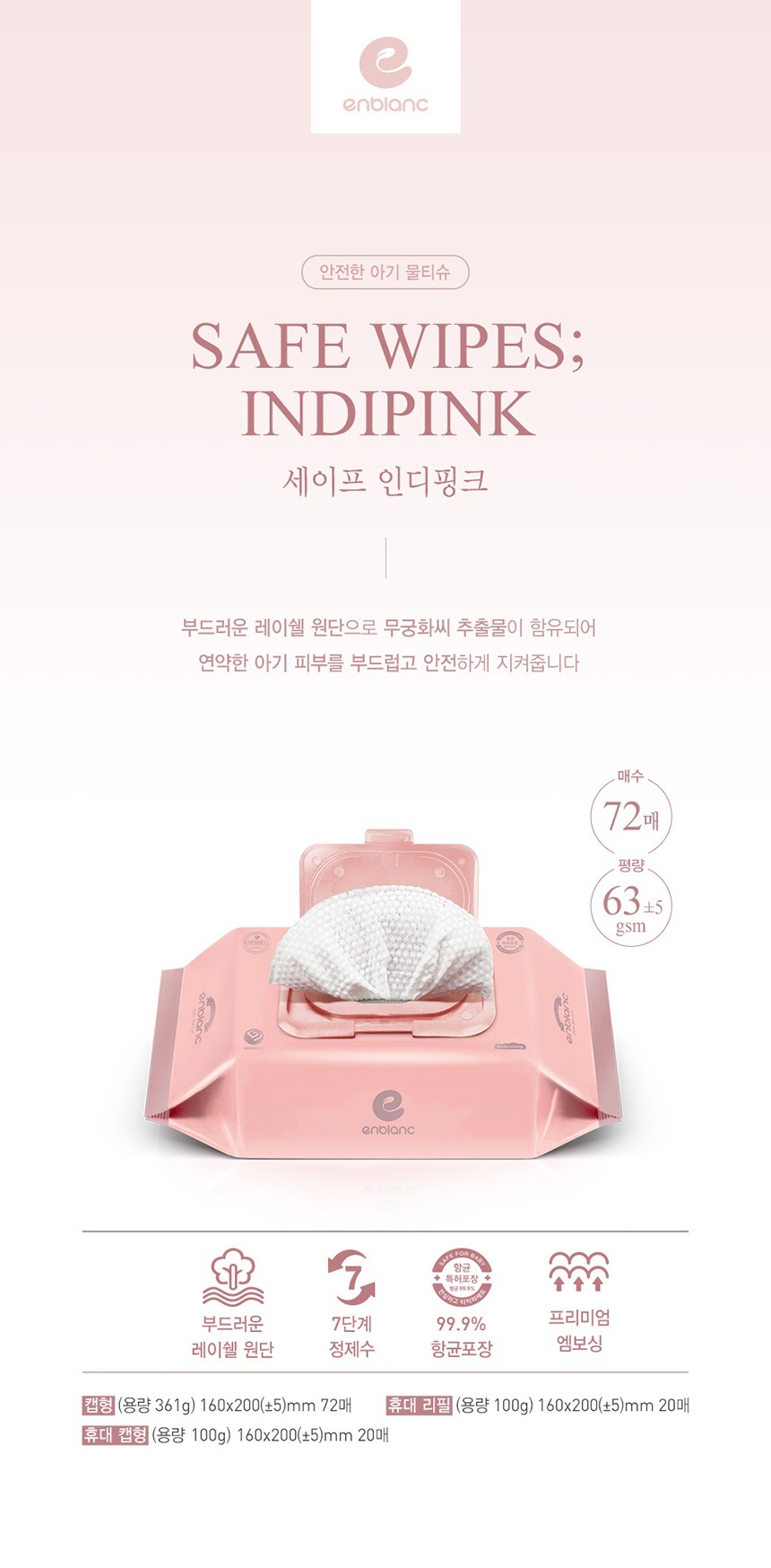 [앙블랑]프리미엄 아기물티슈 인디핑크 휴대리필형 20매x12팩