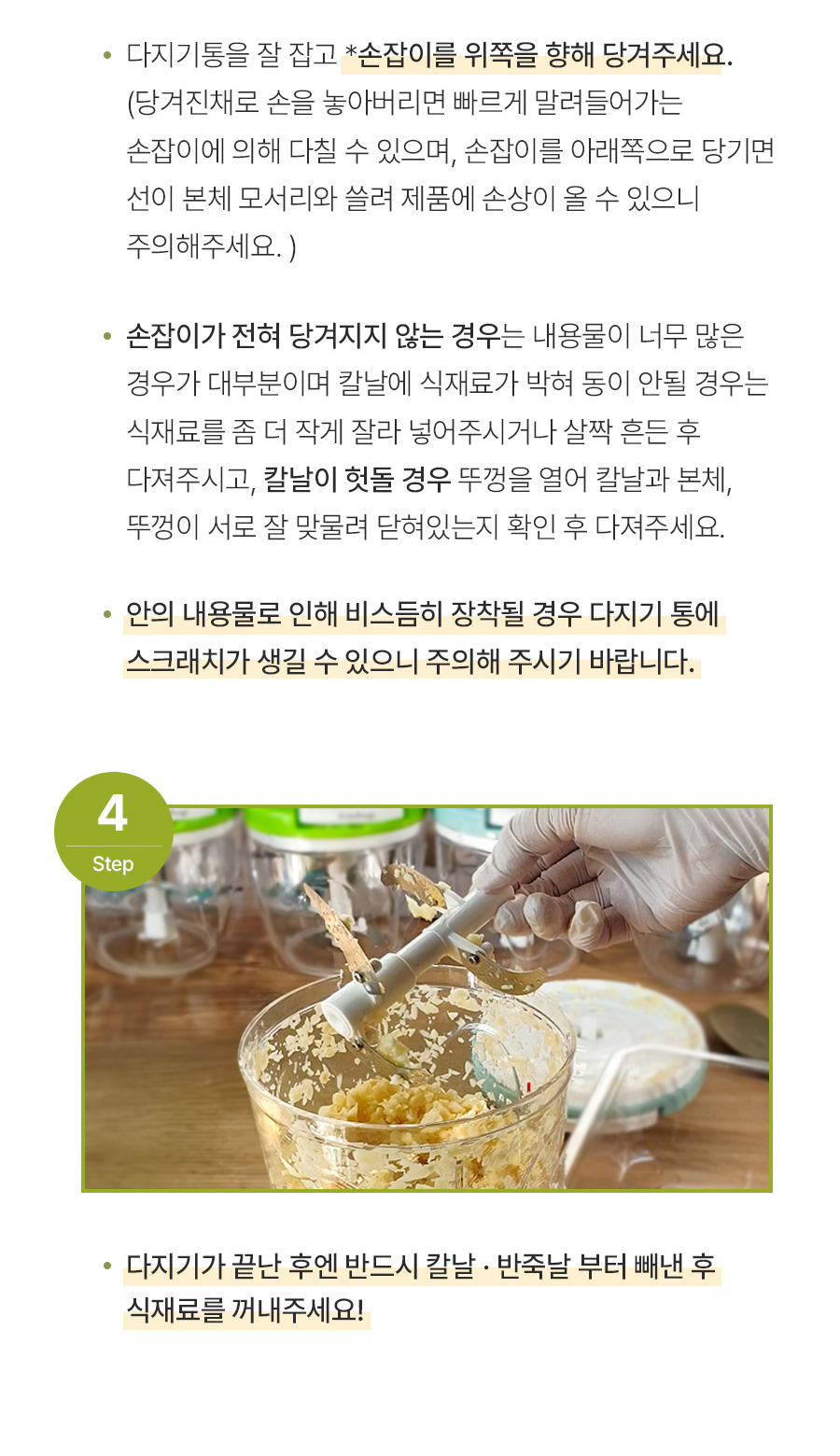마늘, 견과, 육류 및 각종 야채를 쉽고 빠르게 다져주며