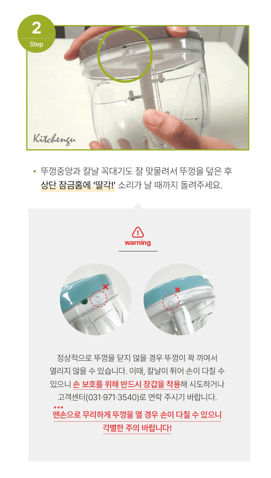 본체, 칼날, 뚜껑 3단 분리형 구조로 세척이 간편하며