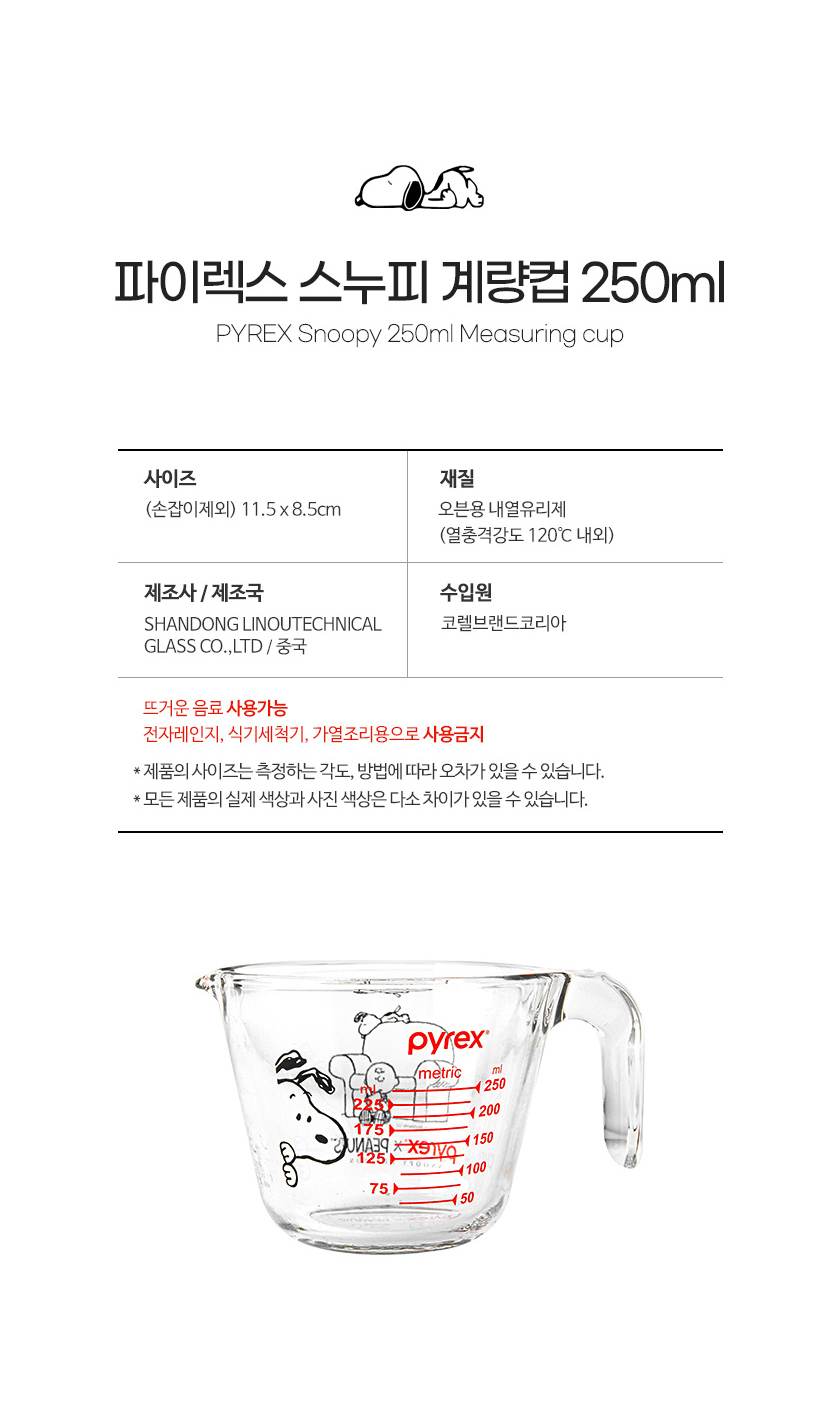 | 품명 및 모델명 | [파이렉스] 스누피 계량컵 250ml |